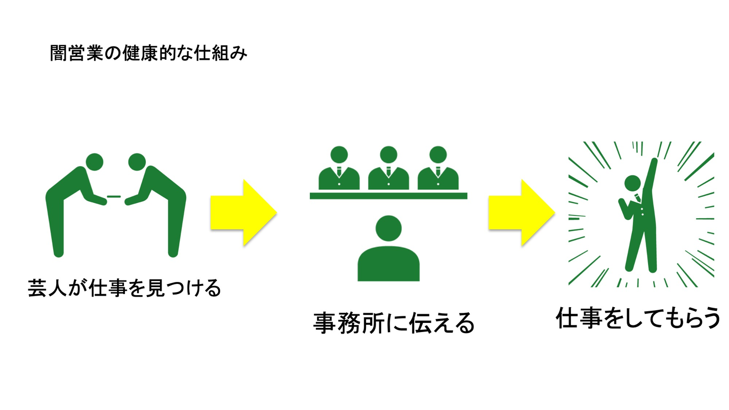 と思うのです。なぜ、その理論を展開するか説明します。闇営業の仕組みを一言で説明すると