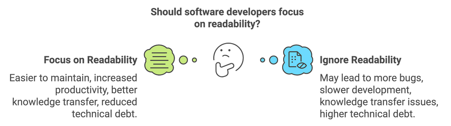 Coming off of our discussion of clean code, letβs take a look at one of the key components in making it clean:Β readability.Β Why is readability important in software development?