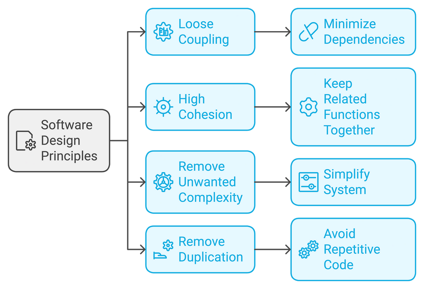 In order for code to be easy to change, some important software design principles have to be followed. First of all the concept ofΒ Loose Coupling: which calls for dependency among components to be reduced to a minimum because changes to some module will thus not cut through the system.Β High CohesionΒ arranges functionalities related to a particular aspect of the system together for easy maintenance and changeability of the code. The system becomes straightforward byΒ removing unwanted complexity, with fewer chances of bugs and errors. Finally, removal ofΒ duplicationΒ cleans up the code and makes the maintenance of the code easier to perform since developers do not have to change the very same logic multiple times when performing updates. This set of principles enables developers to make changes more quickly, safely, and flexibly.