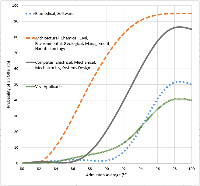 6.1 First of all, I want to clear the confusion about when students should or shouldn’t apply for Software Engineering and consider a different engineering major. I constantly hear people not wanting to apply for Software Engineering because it seems too competitive. I think that is a logical thought that students should have but sometimes people misjudge when or when they shouldn’t apply for SE. I think the line where people shouldn’t have any of those thoughts is when you have a 93+ average. This might be very different for each case so I don’t want to suggest that you should not apply to SE if you have a top 6 average under 93. Rather, I’m trying to suggest that if you have a 93+ average, you shouldn’t be discouraged to apply to SE. The stats are as follows: