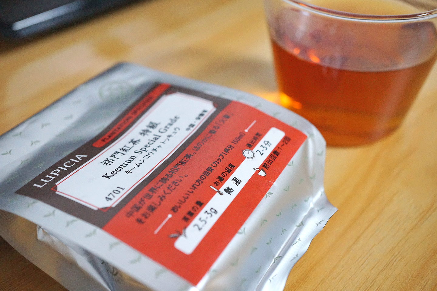 数日待ってようやく届いたルピシアの「祁門紅茶 特級」をさっそく淹れてみる。烏龍茶のような香りと、シブ味の少ない爽やかな口当たりは、子に当たる「紅韻」にたしかに受け継がれていると思った。紅韻はキームンに輪をかけて香りが濃厚で、更に渋みが和らいでいるので、いわゆる紅茶が苦手な人にも飲みやすい紅茶だと言える。